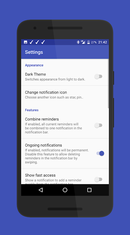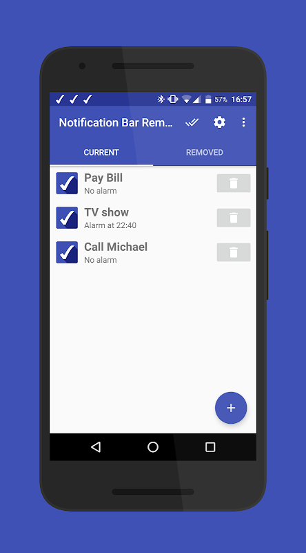 Notification Bar Reminder is a kind of To Do App for your Notification Bar. You can easily create reminders, which are shown in the Notification Bar of your mobile phone.