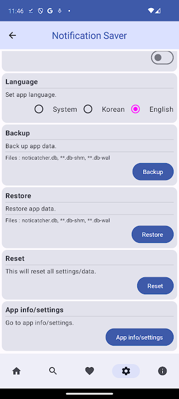 - Backup/restore function of saved notifications