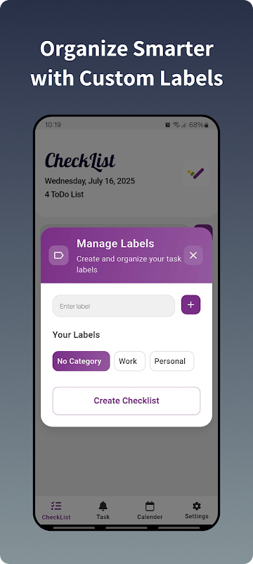 - Custom Checklists – Easily build and track checklists for projects, groceries, or daily goals.