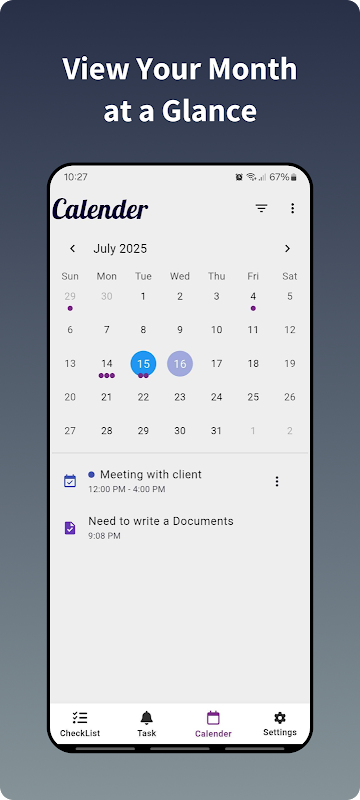 - Smart Reminders & Notifications – Set custom reminders for tasks, events, and checklists to never miss a deadline.