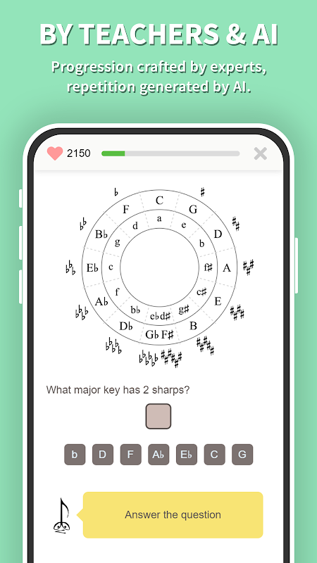 The pedagogical model, created together with the Royal College of Music in Stockholm, starts with note names ("C D E"), and proceeds to use scale degree numbers ("1 2 3"). This was worked out to be the easiest way to understand scales without having to learn specific new vocabulary, and instead focus on the singing. The app then teaches key signatures and rhythm, enabling the user to sing real songs from notation!