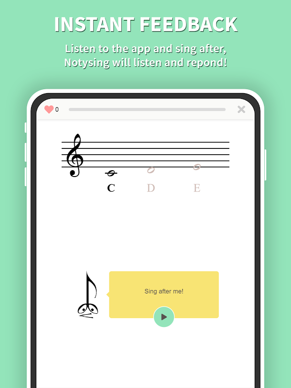Learn the basics of music in a fun and musical way by singing. You are guided by your digital song coach Noty, who gives you feedback on what you do on your level, from the very first steps and all the way through!