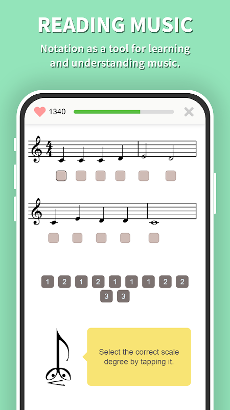 Upcoming lessons will move on to teach solfège ("Do Re Mi"), but with scale degree numbers being very intuitive, the app can already be used in parallel to solfège based learning.