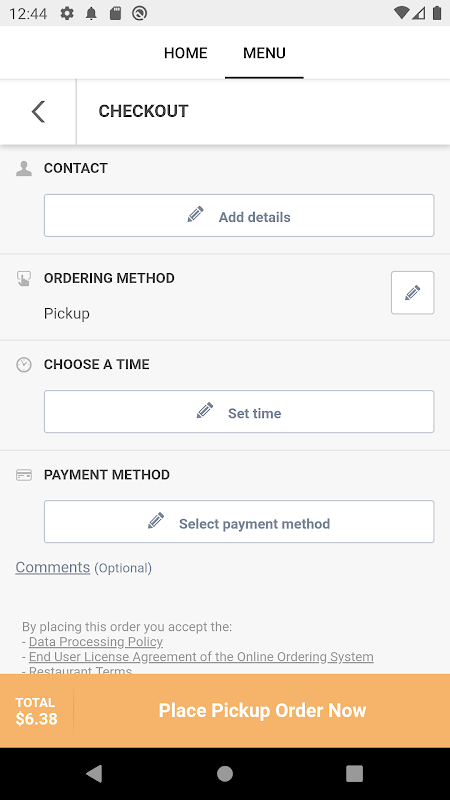 - Browse the restaurant menu and customize your options.
