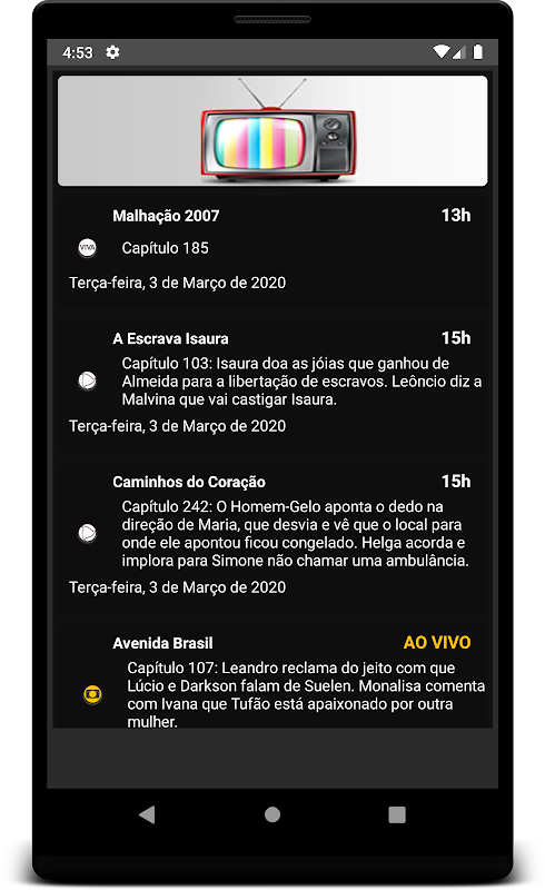 The APP (application) give you information of all the soap operas that are on the air on Globo, SBT and Record, Band and Viva.