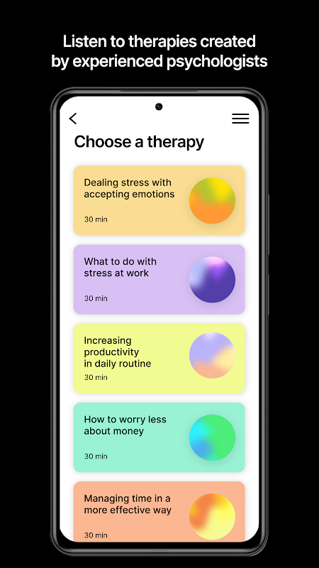 Just go to the app, choose a problem, listen therapies, answer the questions, and do mental health activities.
