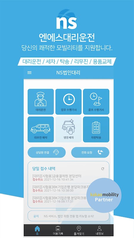 'NS Service' surrogate operation is a high-quality corporate member-only application that provides more convenient and faster service using improved GPS and LBS technology as the exclusive B2B partner of Kakao Mobility.