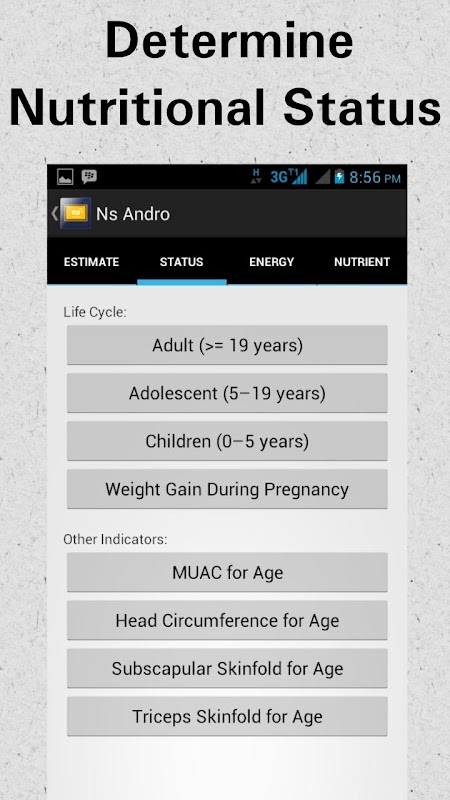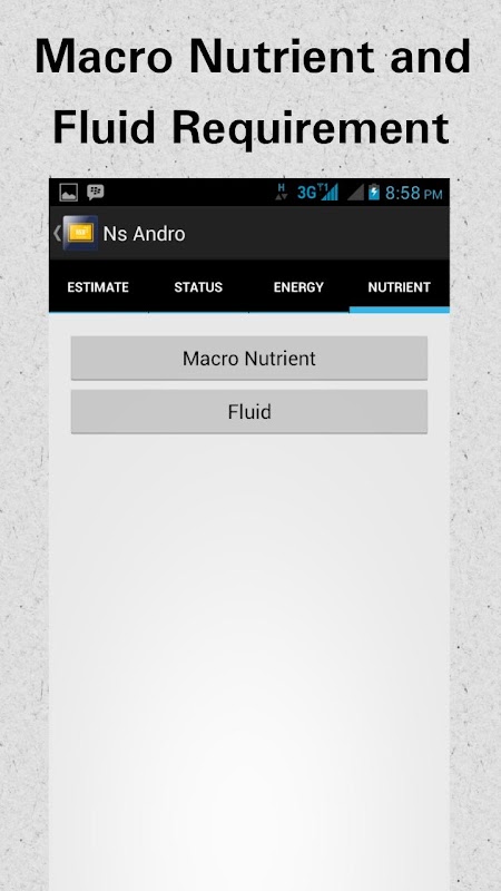 NS Andro will help you calculating your nutritional status and nutritional requirement's patient