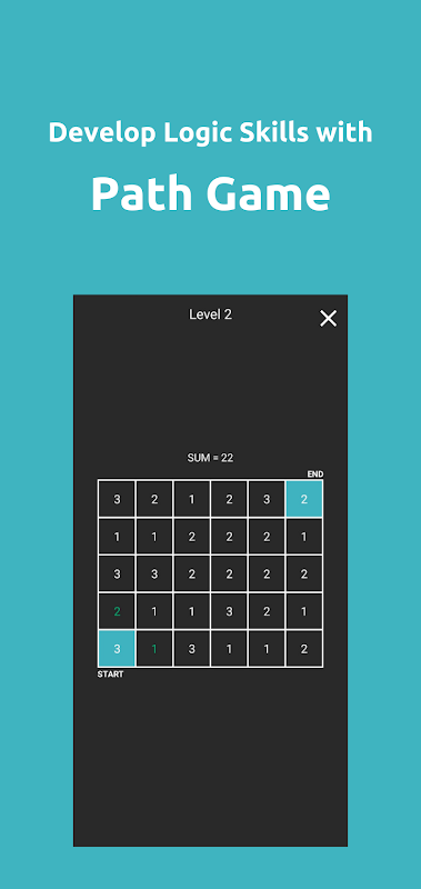 To play the path game, you have to form a path between START and END numbers such that the sum of all the numbers equals the SUM value. You can only select numbers that are in green color. To delete a number, tap on the last number you selected.