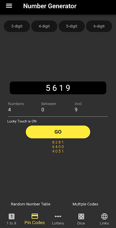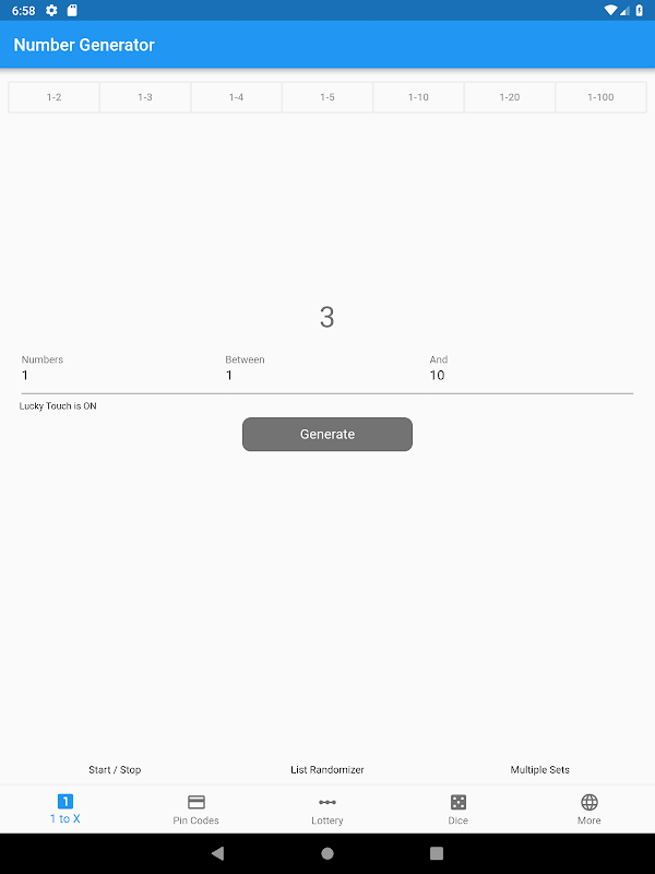 Quickly generate Random Numbers, Lucky Numbers, Pin Codes, Dice Rolls and more