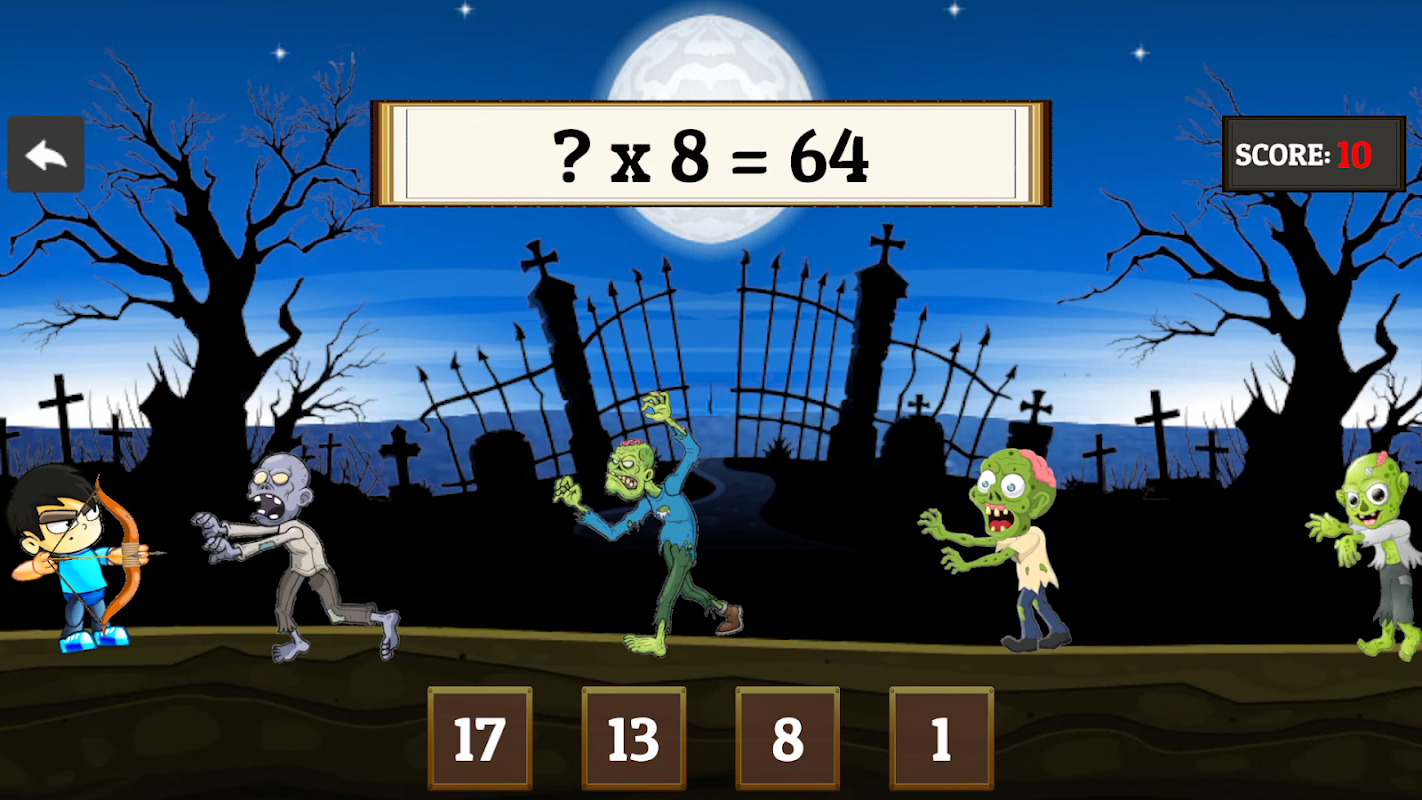 In the game, everybody will transform into a brave warrior to fight against evil zombies. To defeat zombies, everybody needs to solve math puzzle. math games have many different levels, with increasing difficulty, helping everybody learn and develop mathematical thinking.