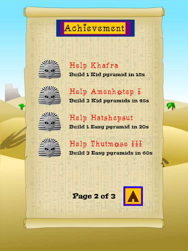 Help the pharaohs of ancient Egypt supervise the construction of pyramids before your glorious return to the home planet.