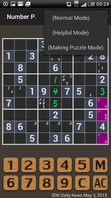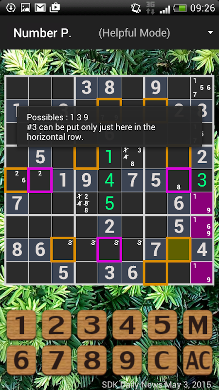 It is the mode for beginners who come to a deadlock, and you can know next plays of the Number Place puzzle in the mode.