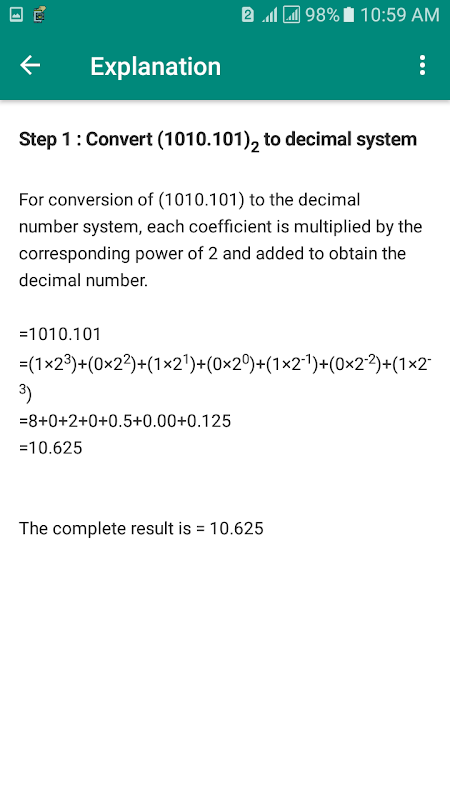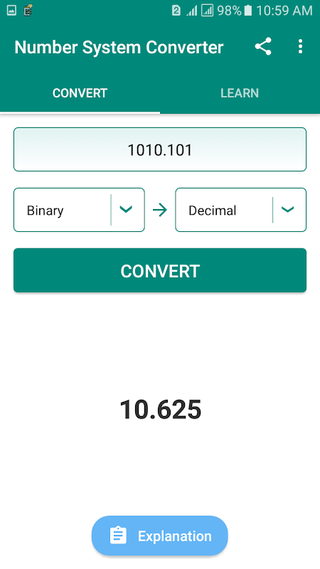 Number System: Learn & Convert with Details is the best app for engineering, computer science and IT guys. In this app, you can easily convert an integer or fractional number into the binary, decimal, octal or hexadecimal system. It's not only an educative tool, it's also a calculator and conversion tool.