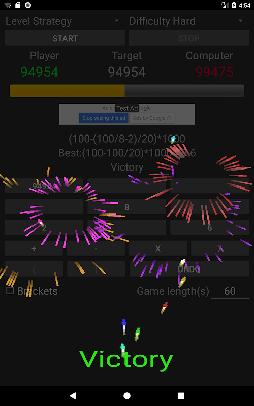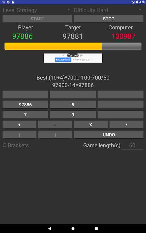 Set game type (number of numbers to be used), and game difficulty and try to beat the computer