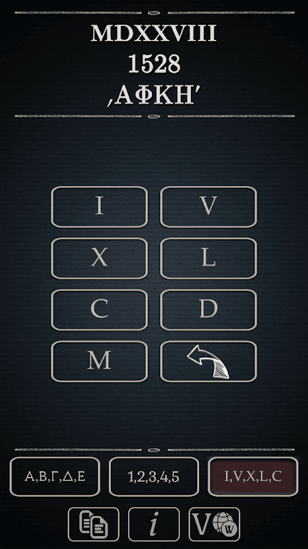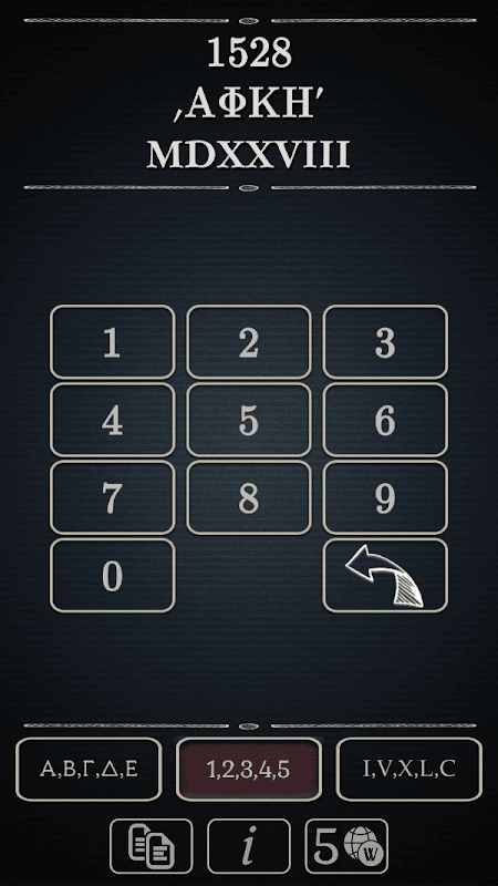 A simple to use tool, for three-way conversion between Arabic (decimal), Latin (Roman) and Greek (Hellenic) numeral systems.