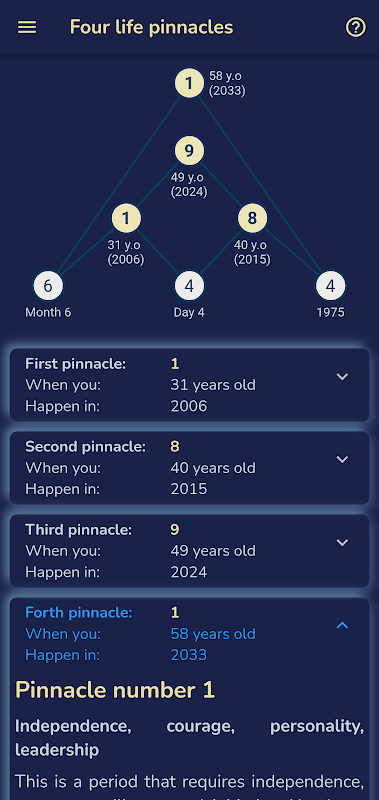 ✅ Four Life Pinnacles – See major life milestones and turning points