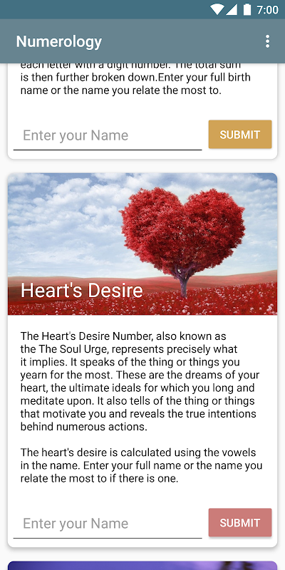 This app has above all an interest in entertainment. Numerology is a controversial science whose validity has never been demonstrated. Do not take too much to heart the results you could get and keep in mind that you alone are the master of your life and what you can do.