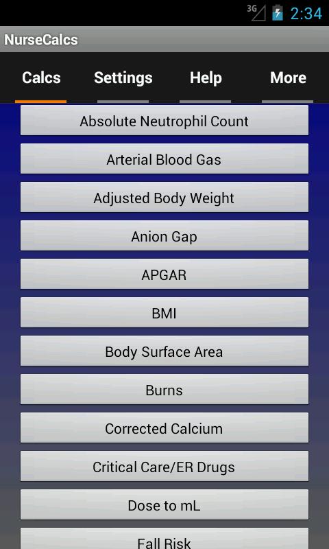 NurseCalcs is a great nursing app for nurses as well as nursing students. NurseCalcs features 25 of the most used nursing calculators, with more to be added soon. The Critical Care/ED calculator has many of the most commonly used drips with usual dosing. The ABG interpreter will help you to quickly determine the blood gas disturbance. IV Rate will calculate rates whether you are using a pump or gravity.