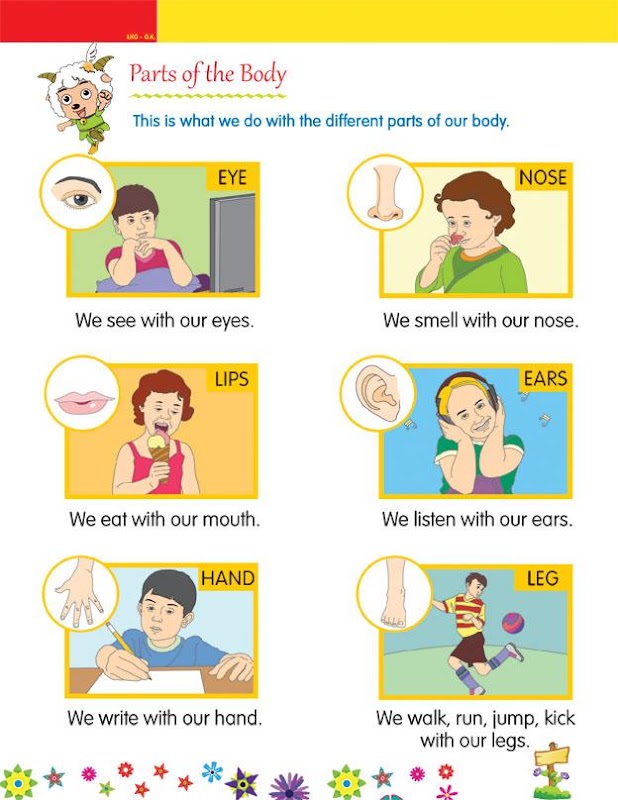 General Knowledge:- list of fruits Vegetables, Birds,Animals,Flowers,Transport, People who help us and indian Festivals.