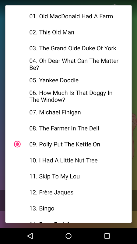 The collection includes the following "nursery rhymes for 2 year old baby":