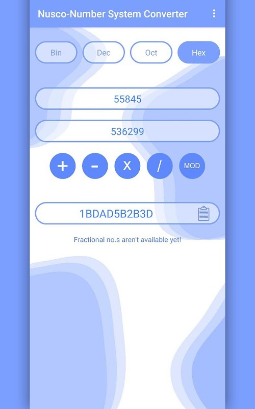 A converter and calculator all integrated into one application. This application is best suited for students in engineering, computer science and IT folks. A smooth, functional, minimal app that will get your work done in seconds. The application has three sections, one for conversions (any to any), one for calculations (any number system) and a quick chart in case you want to calculate it yourself or learn it yourself.