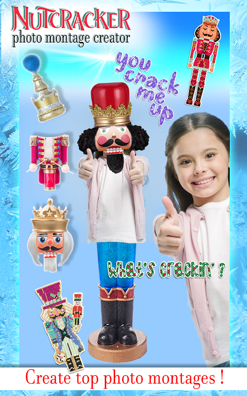 If you like nutcracker and want to look just like him, you are in the right place. This toy soldier is just a click away from you. Once you get this photo montage maker, you will enjoy the vibrant colors and sticker designs that will make your picture editing experience memorable. This is an app for boys, but it can also be a girly app because everyone can use it. If you like free photo editing apps with stickers, welcome to our nutcracker app. If you are into nutcracker games, toy soldiers games and toy story, download Nutcracker Photo Montage Creator!