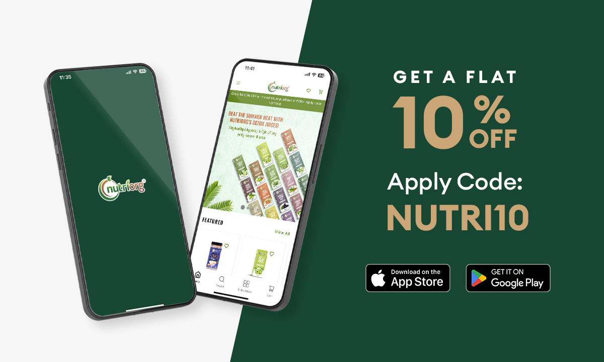 Download the Nutriorg app today and explore the finest range of organic health and wellness products. Make the switch to natural living and experience the benefits of pure and organic nutrition!