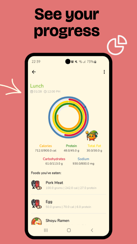 📊 Detailed Nutrition Insights: Track your daily intake of calories, sugar, cholesterol, and macros like carbs, protein, and fat with easy-to-understand stats.