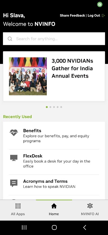 Stay connected with NVIDIA and the latest company news with the NVINFO App. Quickly access top NVIDIA employee tools and resources on the go.