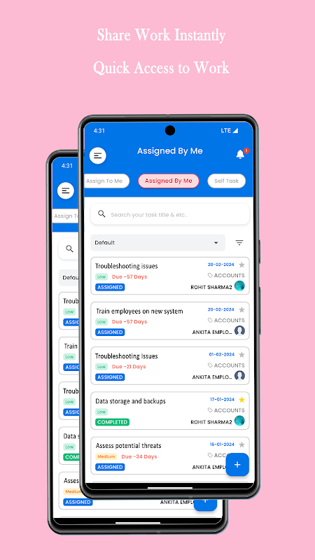 Assign, Track, discuss, or collaborate all in just one app and watch as you and your teammates become more productive! Our app enables you to create and share the task data with teammates in real-time, with inbuild attachment facility.