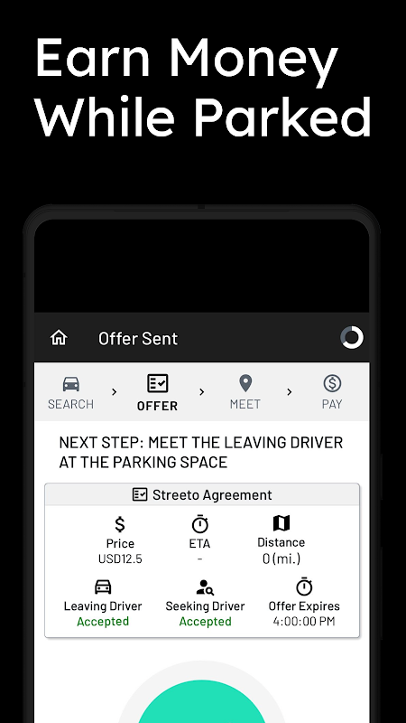 2. The Seeking Driver OFFERS to pay a Streeto Agreement near a desired location.