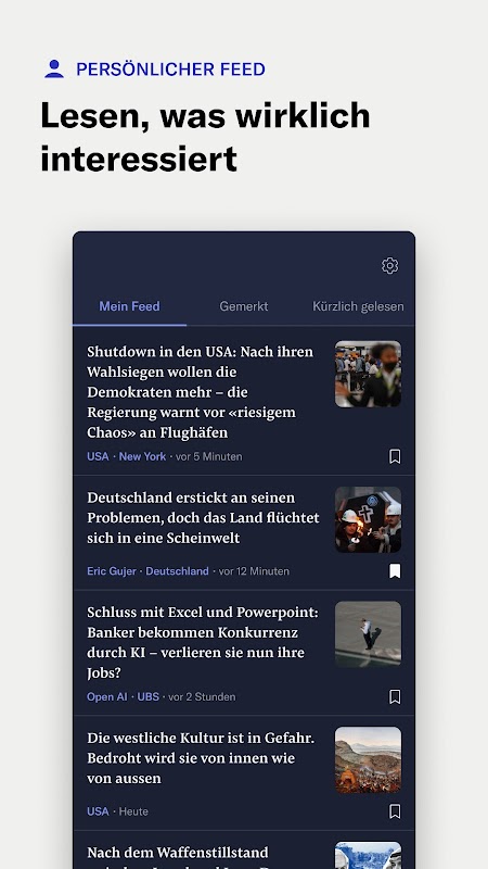 • Display personalized content based on your interests and never miss relevant news again – with newsfeed, watch list, collections, and follow function.