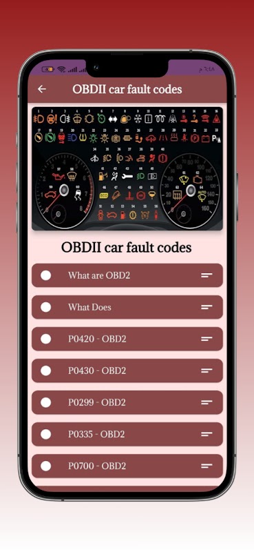 - OBD II fault codes app. Contains some abbreviations with brief description.