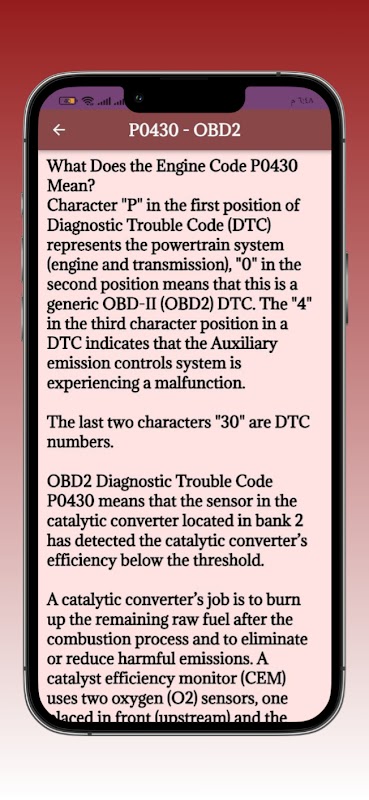 OBD II fault codes app. contains generic OBD II fault codes with brief description (P fault codes, B fault codes, C fault codes, U fault codes).