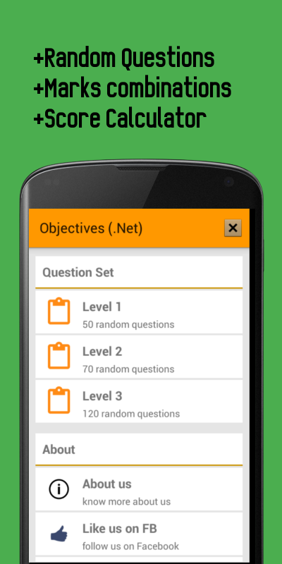 Application covers frequently asked .Net related interview objectives questions. It is suitable for beginners and those who are looking for practice exams.