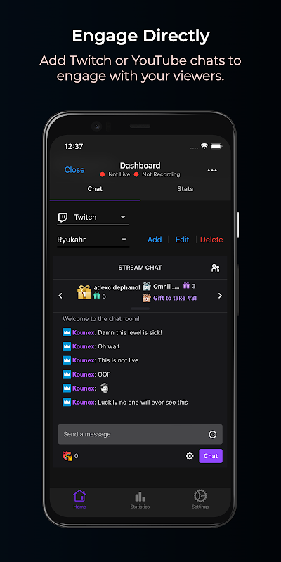- See live statistics of your stream performance (FPS, CPU usage, kbit/s etc.)