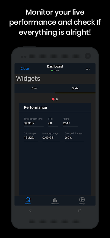 - See live statistics of your stream performance (FPS, CPU usage, kbit/s etc.)