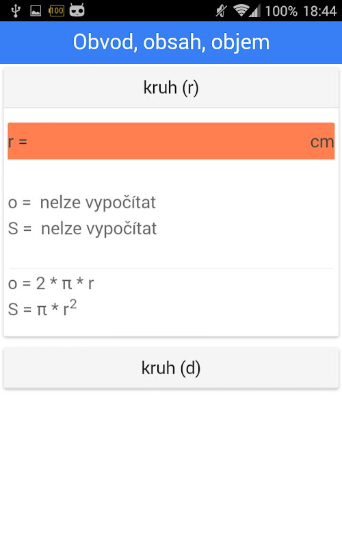 2D: výpočet obvodu a obsahu čtverce, obdélníka, trojúhelníka, kruhu a lichoběžníka.