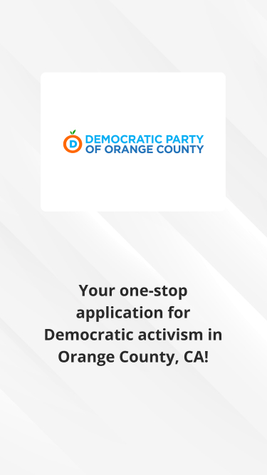 Your one-stop application for Democratic activism in Orange County, CA! We provide you everything from your endorsed slate of Democratic candidates (from the top to the bottom of the ballot) as well as local Democratic events, ways to connect with your Democratic neighbors, and more.