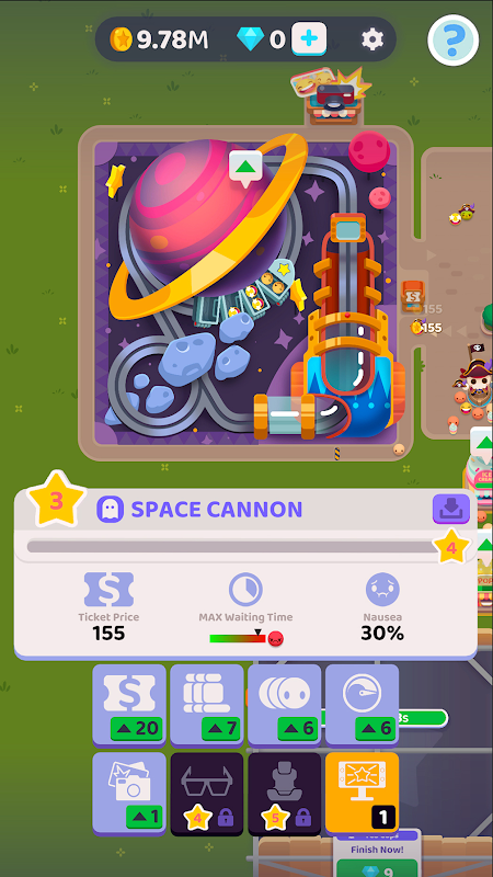 Enjoy watching your visitors have a blast while riding your attractions! Watch out! They will also get mad at you if you don't craft the best experience ever for them!