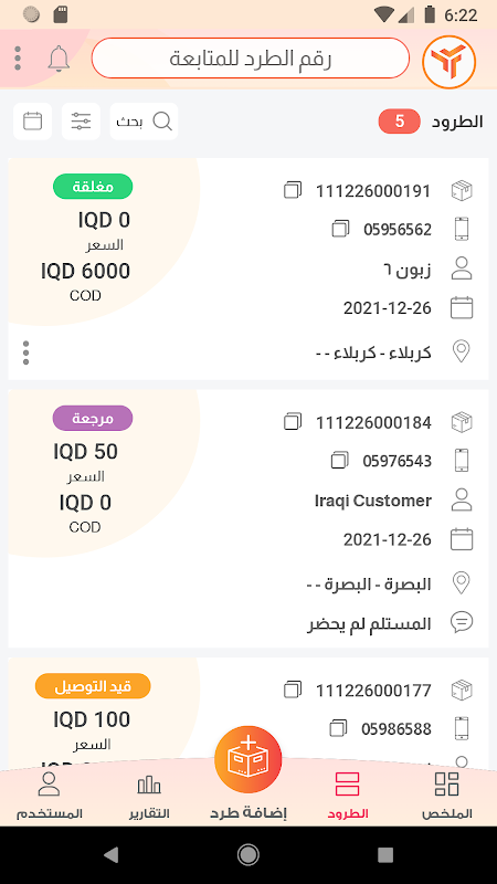 The application allows the company's customers to manage and follow up on their packages from the moment they are added to the system until they are delivered, in addition to managing and following up on financial collections and their status to facilitate their follow-up with the company.