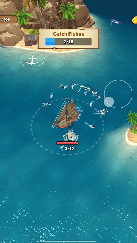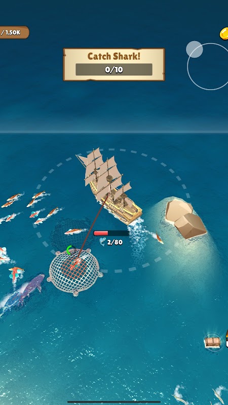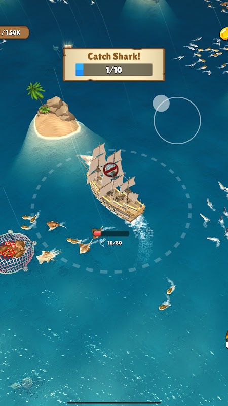 Throw net to collect fishes and upgrade your ship!