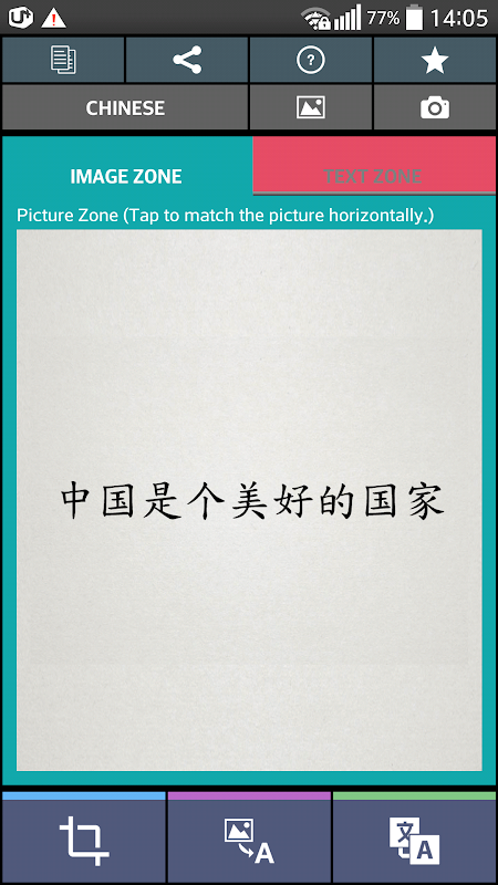 2. Select image's Chinese text area by crop picture function.