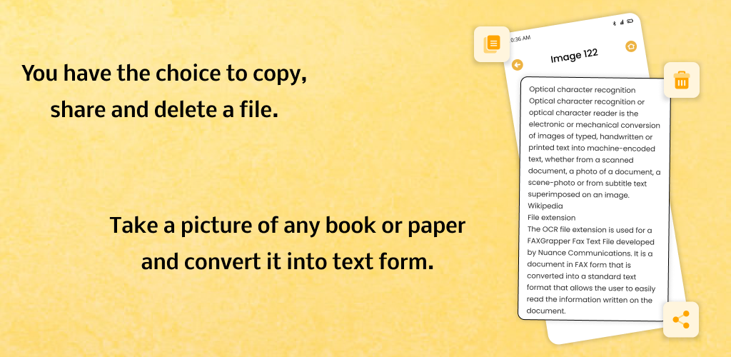 - The Image to text scanner enables you to scan a file by taking a photo or importing it from the smartphone’s photo gallery. After that, the Image OCR scanner will automatically scan your whole image and convert it into the desired text form.