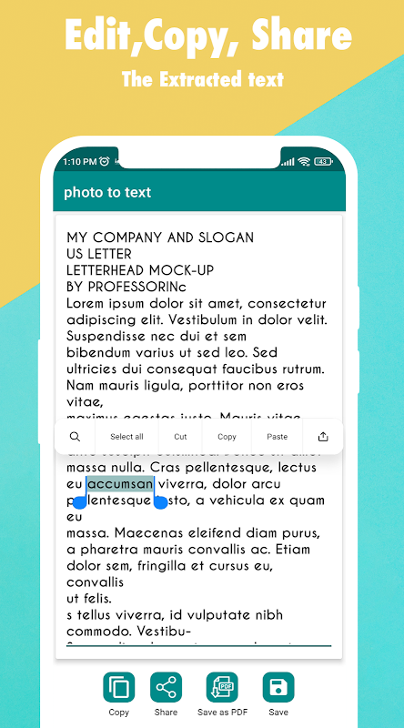 With OCR to Text - PDF Scanner, you can convert your PDF files into editable text documents in a snap. The PDF OCR to Text feature allows you to extract text from PDFs, making it convenient to search, edit, and repurpose content with ease.