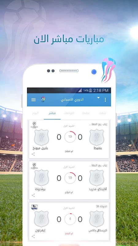 مشاهدة نتائج المباريات وقت لعبها