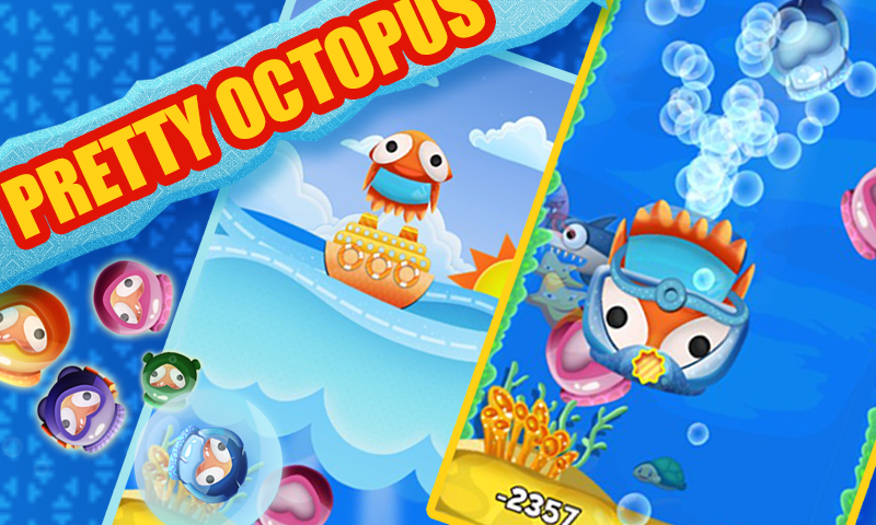 Our goal is to control the cannons and launch the Octopus as dive as you can. Just touch the screen to launch him and make sure he reaches the next cannon to continue going up. Try to collect different power-downs as you fly and avoid Shakes that appear along the way.