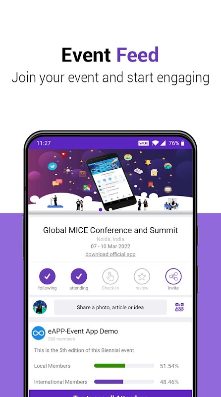 Get all the information about the event and assistance to complete your event life cycle. Know more about exhibitors, organisers, speakers and connect with other attendees. Explore event feed, chat with other participants and more.