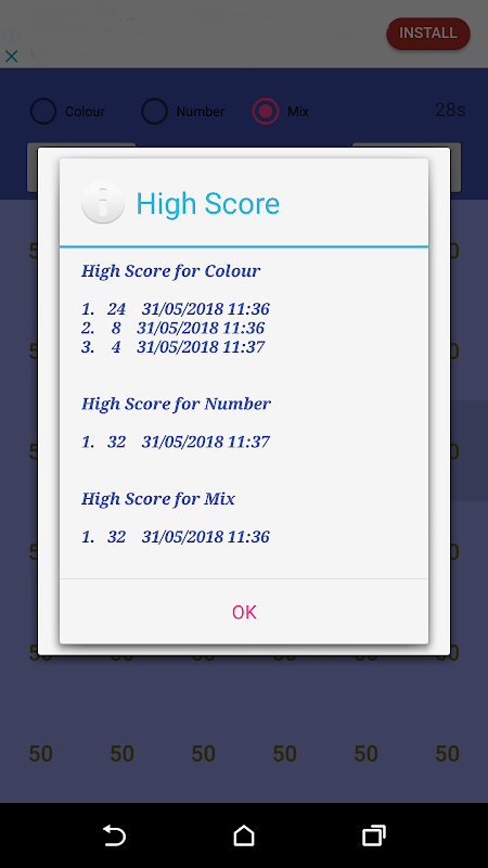 A simple game where you have to spot the odd one out. It can be set to be colour, or a number or a mixture of both.